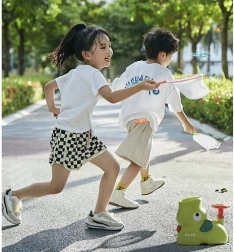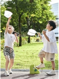 Fördern Sie die gesunde Bewegung Ihrer Kinder mit dem KRUZZEL Scheiben-Abschussgerät. Der einfache mechanische Antrieb ohne Stromversorgung sorgt dafür, dass der Spaß sofort beginnen kann – drücken Sie einfach die Hand-/Trittpumpe und beobachten Sie den rotierenden Sinkflug der bunten Scheiben, der an fallende Blätter erinnert.