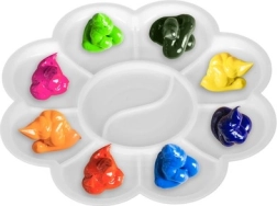 Die blütenförmige Kunststoffpalette erleichtert das Trennen und Mischen der Farben, sorgt für Ordnung bei der Arbeit und spart Zeit.