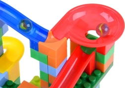 Diese bunte Murmelbahn aus Baublöcken ist die ideale Wahl für Kinder, die es lieben, zu kreieren und zu entdecken. Das Set enthält unterschiedlich geformte und farbige Blöcke zum Bau verwickelter Murmelbahnen.