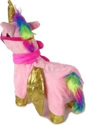 Das rosa Einhorn mit bunter Mähne und goldenen Flügeln erfreut jedes Kind.