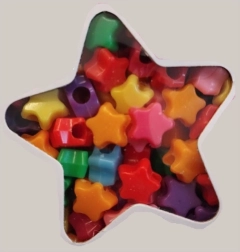 Kreatives Set bunter Perlen in Sternform mit einer 1 m langen Schnur zum einfachen Auffädeln. Gestalten Sie eigene Armbänder und Halsketten für sich und Freunde. Die Perlen lassen sich leicht auffädeln und mit weiteren Sets aus der Kollektion kombinieren (12 Varianten).