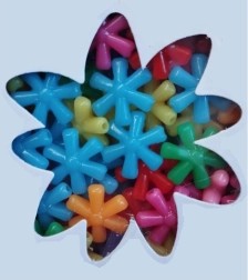 Kreatives Set aus bunten Perlen in Sternform, inklusive 1 m langer Schnur zum einfachen Auffädeln. Ideal zur Herstellung eigener Schmuckstücke – Armbänder und Halsketten. Die Perlen lassen sich leicht auffädeln und mit weiteren Sets aus der Kollektion (12 Varianten) kombinieren – für noch mehr Ideen.