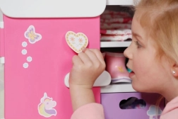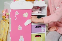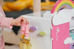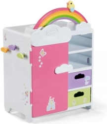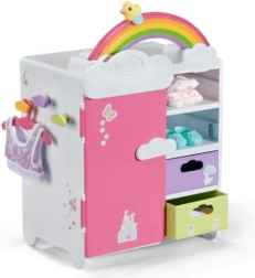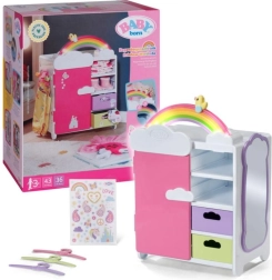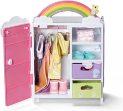Entdecke den Regenbogen-Kleiderschrank BABY born, der clevere Organisation und verspieltes Design vereint. Kinder werden den leuchtenden Regenbogen mit Ente Berta und die fröhliche Melodie bei der Outfitwahl lieben. Der Schrank bietet viel Platz für alle Accessoires und Puppenkleidung – von Kleidchen bis zu Schühchen.