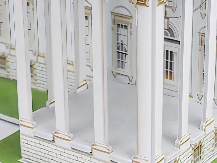 Bauen Sie Ihr eigenes Modell des Weißen Hauses und genießen Sie ein unterhaltsames und lehrreiches Zusammensetzen. Die einzelnen Teile befinden sich auf speziellen Bögen und greifen präzise ineinander, sodass Sie für den Aufbau keine scharfen Werkzeuge und keinen Klebstoff benötigen. Das fertige Modell macht sich großartig im Regal oder auf dem Schreibtisch.