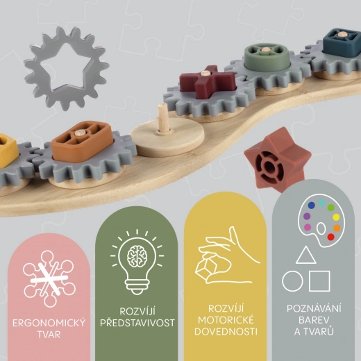 Entdecken Sie die Magie des Lernens mit unserem Bambus-Silikon-Puzzle, das Spiel und Wissen verbindet. Bunte Zahnräder fördern die Feinmotorik, das logische Denken und die Vorstellungskraft Ihres Kindes. Die Kombination aus natürlichem Bambus und sicherem Silikon bietet ein angenehmes sensorisches Erlebnis und unterstützt das natürliche Entdecken der Welt der Mechanik.