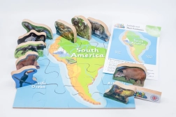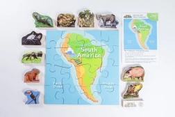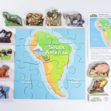 Tauchen Sie ein in die Welt Südamerikas und entdecken Sie mit diesem Holzpuzzle seine faszinierende Fauna. Die Sammlung enthält: