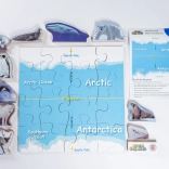Dieses Lernset der Marke Just Jigsaws vermittelt Kindern Wissen über die Polarregionen auf spielerische Weise. Zunächst setzen sie eine Karte aus 16 stabilen Teilen zusammen, anschließend ordnen und benennen sie 10 Tiere, die in diesen Regionen leben. Realistische Illustrationen und die standfeste Ausführung der MDF-Figuren sorgen für ein starkes visuelles Erlebnis und hohe Widerstandsfähigkeit bei häufigem Gebrauch.