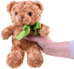 Das weiche, lockige Fell und die sanfte Füllung machen den Bären zum idealen Begleiter zum Einschlafen und für Umarmungen den ganzen Tag.