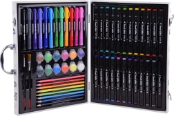 Das Set kombiniert Buntstifte, Aquarellfarben, dicke und dünne Filzstifte sowie Pinsel – ideal zum Zeichnen, Ausmalen und Malen.