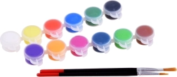 24 dicke Filzstifte, 12 Fineliner, 8 Buntstifte, 12 Aquarellfarben, 2 Pinsel, 1 Malbuch