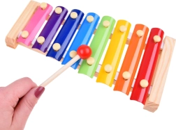 Im Set befinden sich zwei Holzschlägel mit angenehmer Länge für Kinderhände sowie Beispielnoten auf der Verpackung, mit deren Hilfe Kinder leicht ihre ersten Melodien lernen. Das Spielen auf dem Xylophon unterstützt Konzentration, Koordination und Kreativität.