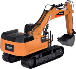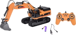 Die Fernsteuerung auf 2,4 GHz arbeitet stabil und störungsfrei, sodass Sie Vorwärts-/Rückwärtsfahrt, Drehen auf der Stelle, das Anheben des Auslegers sowie die Schaufel separat steuern können. Stummschalttaste, DEMO-Funktion und Hupe sind ebenfalls vorhanden.