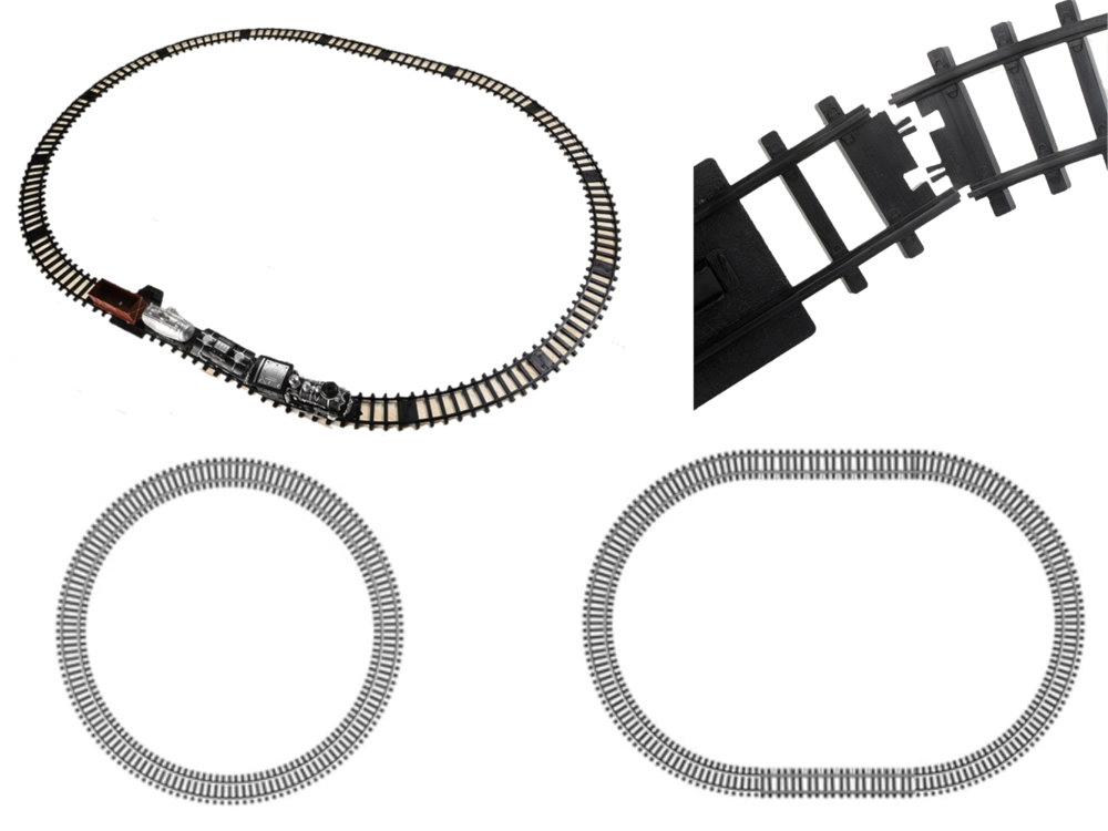 Das Set ermöglicht die Erstellung verschiedener Gleisformen mit den mitgelieferten Teilen. Kombinieren Sie die Einzelteile und bauen Sie die Strecke nach Ihrer Fantasie.