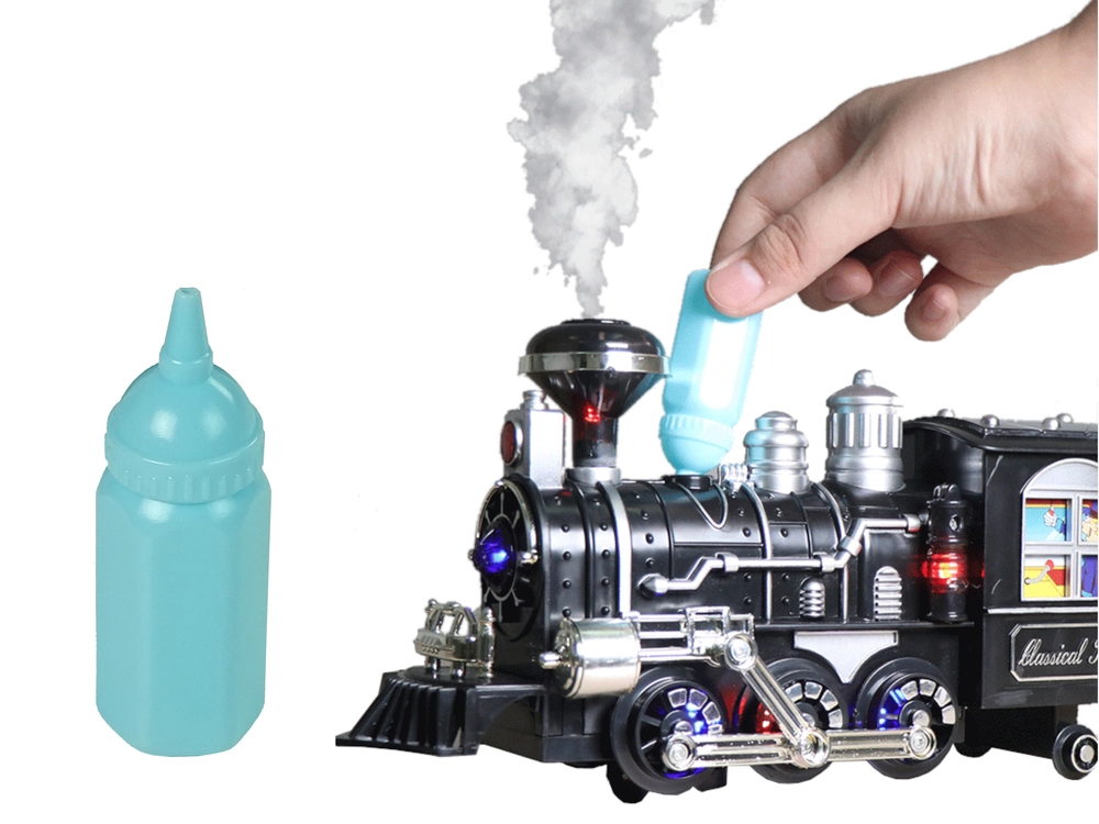 Füllen Sie den Tank der Lokomotive mit Wasser und beobachten Sie während der Fahrt, wie Dampf aus dem Schornstein steigt. Dank der Fernbedienung lässt sich der Zug einfach steuern und verschiedene Fahrmodi genießen.