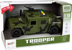 Erleben Sie militärische Abenteuer mit diesem friktionsbetriebenen Militärfahrzeug, das jedes Spiel mit Licht- und Soundeffekten bereichert.