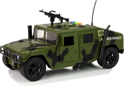 Auf dem Dach des Fahrzeugs befinden sich vier Tasten, die verschiedene Soundeffekte auslösen, wie Hupe, Schüsse, Rückwärtsfahren und Motorstart. Die Frontlichter vervollständigen den realistischen Gesamteindruck. Jedes Detail entspricht einem echten Militärfahrzeug.