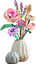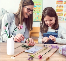 Die Bausteine bestehen ausschließlich aus Kunststoff, sind farbenfroh und hochwertig verarbeitet. Das Set bietet Kindern eine großartige Freizeitbeschäftigung und viel Zufriedenheit. Der arrangierte Strauß in der Vase kann als Zimmerdekoration oder Geschenk für Nahestehende dienen.