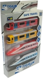 Dieses farbenfrohe Set bringt Kindern die Welt der Eisenbahn direkt ins Kinderzimmer. Enthalten sind vier Wagen – zwei moderne Lokomotiven inspiriert vom Hochgeschwindigkeits-Pendolino (in Rot und Grau-Blau) sowie zwei U-Bahn-Waggons (gelb und rot). Jedes Teil überzeugt mit realistischen Details wie Fenstern, Türen, Frontscheibe mit „Wischern“ und Dachelementen, die an Pantografen erinnern.