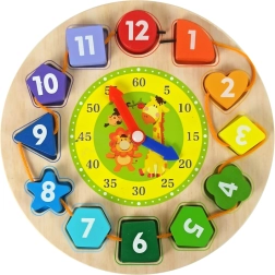 Dieses hölzerne Lernspielzeug ist eine clevere Kombination aus Uhr und Sortierer. Jedes der 12 farbenfrohen Teile passt nur in seine eigene Öffnung – so üben Kinder das Sortieren von Formen, Farben und Zahlen, einschließlich ihrer englischen Bezeichnungen. Bewegliche Zeiger helfen beim natürlichen Erlernen des Zeitablesens.