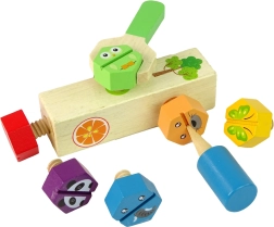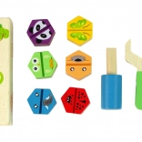 Dieses niedliche Holz-Werkset ist der ideale erste Schritt in die Welt des Reparierens und Bauens. Kinder lernen spielerisch grundlegende Handgriffe, trainieren die Finger und entdecken die Welt der Formen und Farben. Im Set enthalten sind ein Holzblock, bunte Tier-Schrauben, ein Schlüssel und ein Schraubendreher – alles übersichtlich in einer Box verstaut.