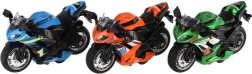 Die detailgetreue Motorraddarstellung in drei Farbvarianten erfreut jeden kleinen Rennfahrer.