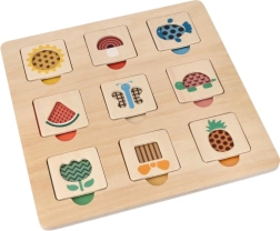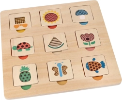 Ein cleveres und unterhaltsames Holzpuzzle für die Kleinsten fördert die Entwicklung der Feinmotorik, das Erkennen von Farben, Formen und Mustern und trainiert das logische Denken. Die 28 × 28 cm große Tafel mit neun farbigen Teilen ist ideal für Kinder ab 12 Monaten und ist dank der sicheren Ausführung aus Holz und der glatten Kanten eine hervorragende Wahl für die ersten Spiele und Lernmomente.