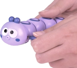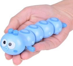 Den seitlichen Schlüssel einfach mehrmals drehen und die Raupe fährt von allein los. Kinder beobachten die wellenförmige Bewegung, lernen das Prinzip von Ursache und Wirkung und haben Spaß beim Hinterherjagen über den Boden.