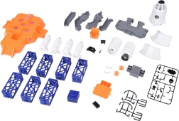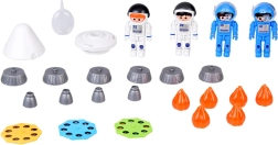 - Rakete mit Projektor, Space Shuttle, Teile zum Bau der Raumstation, 4 Astronautenfiguren, Werkzeuge, 3 Projector-Scheiben (je 8 Bilder), Pipette für Wasser