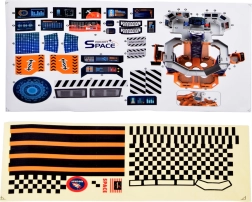- 3 austauschbare Scheiben, insgesamt 24 Weltraummotive (Planeten, Galaxien, Rover, Raketen, Satelliten)