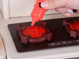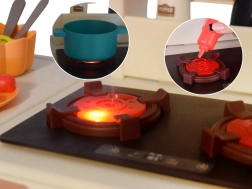 Das Kochfeld simuliert das Kochen: leuchtende Brenner, blubbernde Geräusche und feiner Dampf regen die Fantasie an und machen das Spiel noch realistischer.