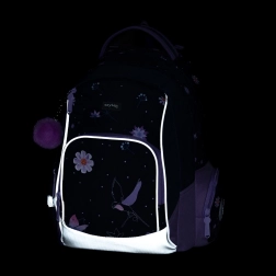 Schulrucksack mit Blumenmuster sieht nicht nur toll aus, sondern ist auch detailliert durchdacht für bequemes und gesundes Tragen. Der Rucksack ist mit ergonomischen und bequem gepolsterten Trägern ausgestattet, die sich einfach an die Bedürfnisse jedes Kindes anpassen lassen. Reflektierende Elemente sorgen für höhere Sicherheit bei schlechter Sicht.