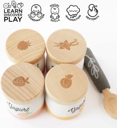 Beginnen Sie den Tag mit dem Holzyoghurt-Set von Le Toy Van! Es enthält vier freundliche Joghurtmodelle mit den Geschmacksrichtungen Pfirsich, Vanille, Himbeere und Erdbeere. Die Holzteile fördern die Entwicklung der Feinmotorik und ermöglichen es den Kindern, die Bedeutung gesunder Ernährung zu entdecken.