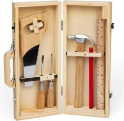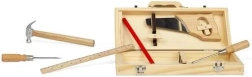 Säge, Hammer, Schraubendreher, Zimmermannsbleistift und Lineal – alles an Kinderhände angepasst für erste, sichere Heimwerker-Erfahrungen.