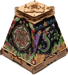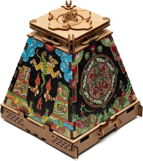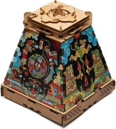 Verwandeln Sie die hölzerne Pyramide in einen auffälligen Design-Blickfang. Diese zweite Schicht mit dem Thema Aztekisches Reich überdeckt die ursprünglichen Motive elegant und verleiht Ihrem Modell einen markanten, farbenfrohen Look, inspiriert vom alten Mesoamerika. Die Erweiterung ist ausschließlich für die PYRAMIDA SLUNCE bestimmt und hat nur dekorativen Zwecksie beeinflusst weder den Mechanismus noch die Lösung des Rätsels.