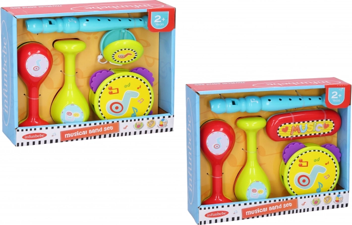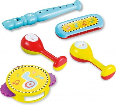 Dieses farbenfrohe Set bietet alles, was Kinder zum Erkunden von Klängen und Rhythmen brauchen. Enthalten sind Rumba-Kugeln (2 Stk.), eine Mundharmonika, eine Flöte und ein Tamburin – eine Instrumentenkombination, die Koordination, Hörwahrnehmung und Kreativität fördert.