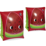 Die aufblasbaren Bestway-Schwimmflügel sind ideal für Kinder, die Schwimmen lernen. Zwei separate Luftkammern sorgen für zuverlässigen Auftrieb, während das weiche und leichte PVC die Armbewegungen nicht einschränkt. Das fröhliche Ananasmotiv und die leuchtenden Farben motivieren kleine Schwimmer zu einem sicheren Kennenlernen des Wassers.