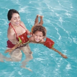 Zwei unabhängige Luftkammern halten das Kind stabil über Wasser und unterstützen die richtige Position beim Schwimmenlernen.