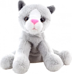 Die Plüschkatze in hübschem Grauton mit einem niedlichen weißen Gesicht und rosa Näschen wird jedem Kind Freude bereiten.
