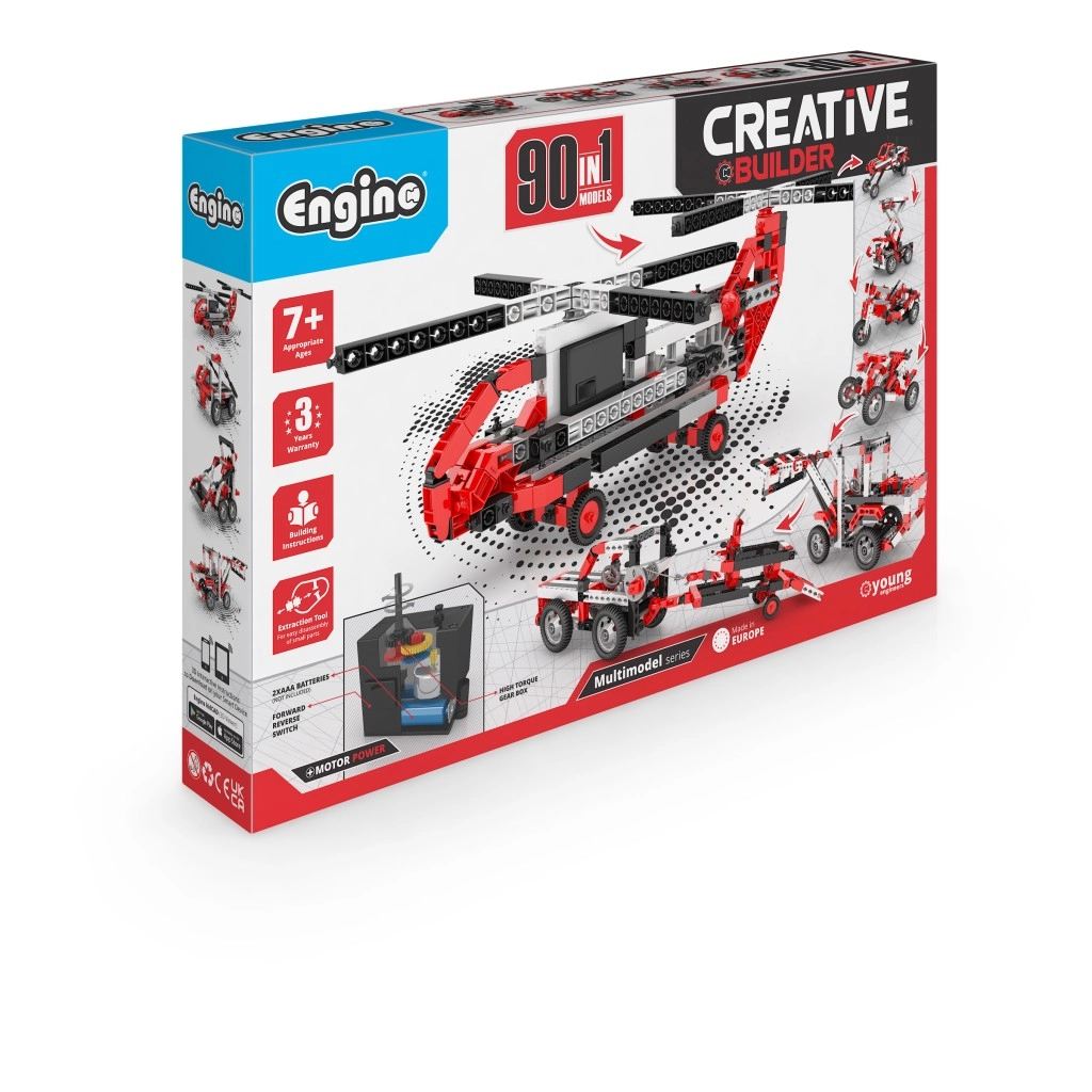 Fördern Sie die Kreativität und manuelle Geschicklichkeit der Kinder mit dem robusten ENGINO Creative Builder. Die einzelnen Teile lassen sich leicht einklicken und schnell zu einem neuen Modell umbauen – vom schnellen Auto über das Motorrad bis hin zum Flugzeug. Dank des Motors mit Richtungswahl setzen sich Ihre Konstruktionen wirklich in Bewegung.