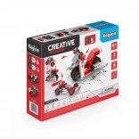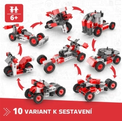 Dieses ENGINO Creative Builder Set verbindet Technik und Fantasie in einem. Aus stabilen Kunststoffteilen in Rot‑Weiß‑Grau entstehen Motorräder, Buggys oder kleine Autos, die dank des durchdachten Systems aus Rädern und Verbindern im Handumdrehen zu neuen Modellen umgebaut werden. Eine Box, 10 Modelle und endlose Spielstunden.