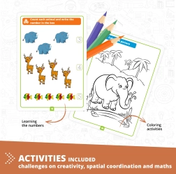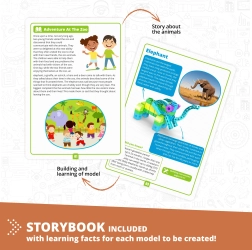 Engino Bausteinset Wir Lernen - Wildtiere bietet Kindern die Möglichkeit, nicht nur bis zu 5 verschiedene Modelle zu bauen, sondern auch interessante Fakten über Tiere zu entdecken. Lernen Sie durch unterhaltsame Aktivitäten wie Malvorlagen, Punkt-zu-Punkt-Verbindungen oder Matheübungen, unterstützt durch eine Anwendung für Augmented Reality.