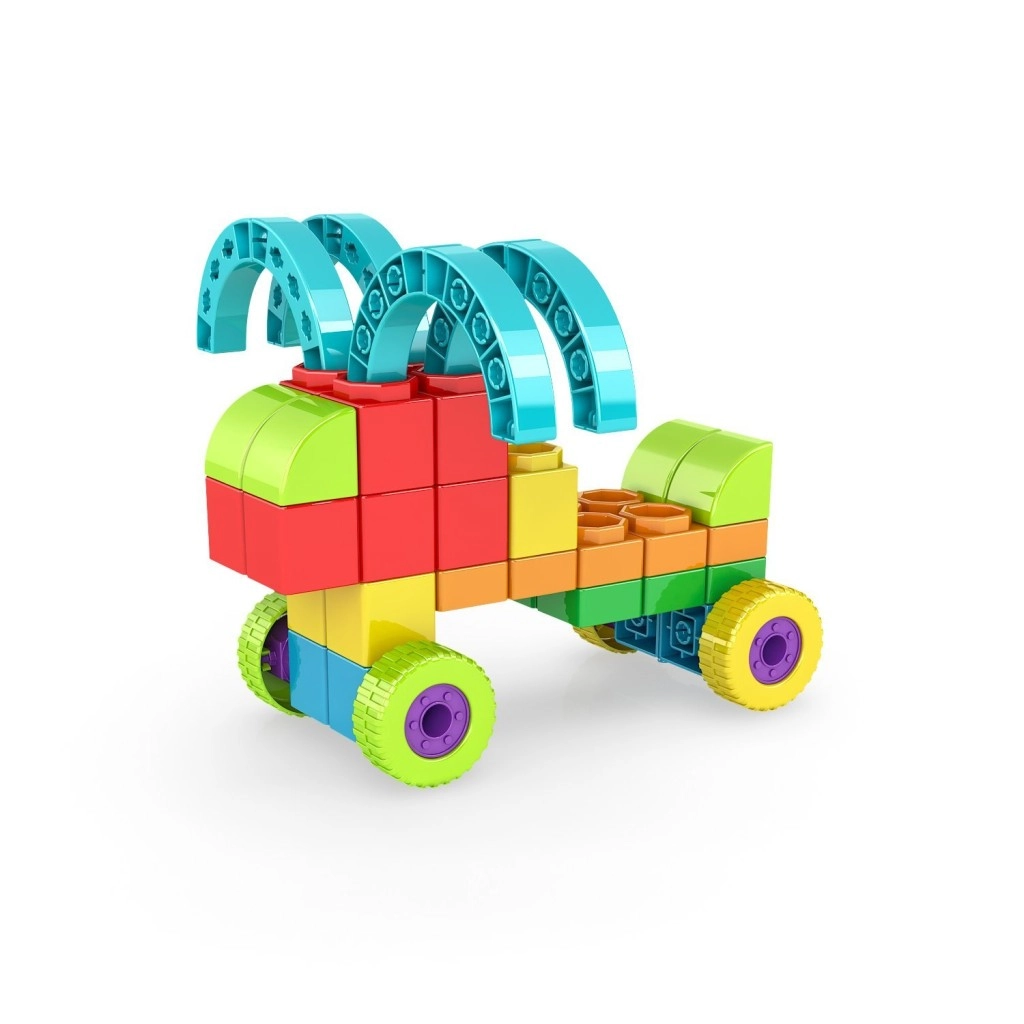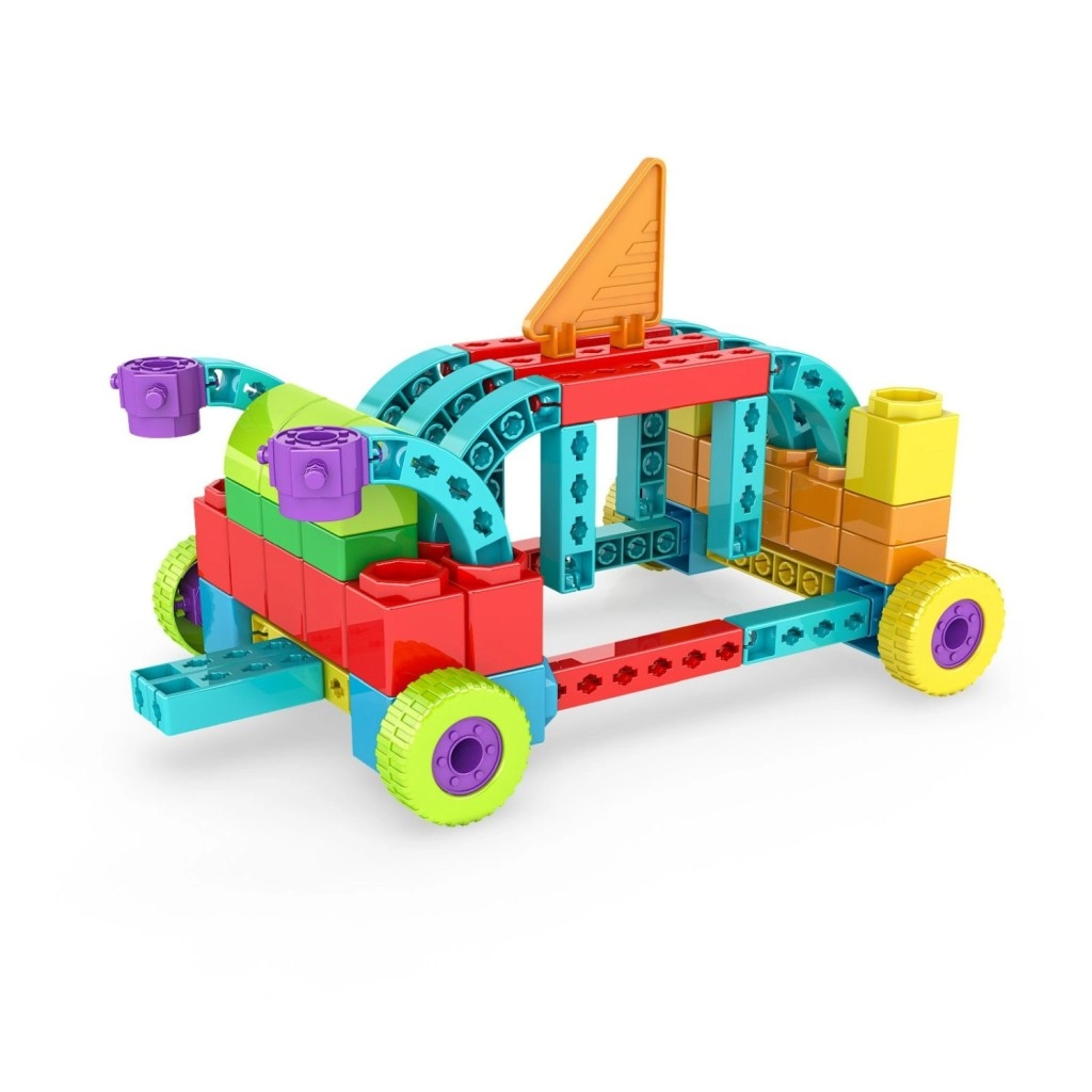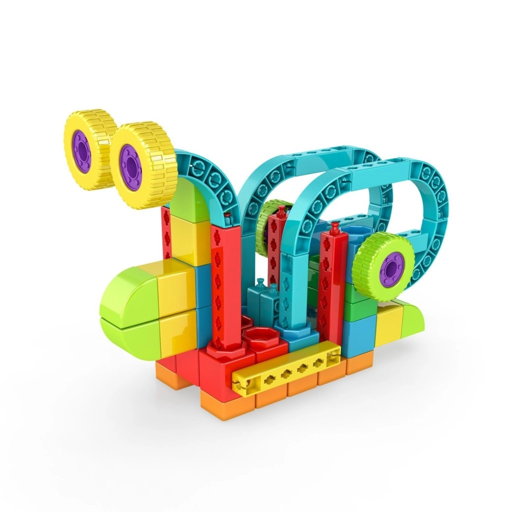 Robuste, bunte Bauteile verbinden sich mit dem Snap-Click-System. Kinder trainieren sicher und selbstständig ihre Feinmotorik und Koordination.