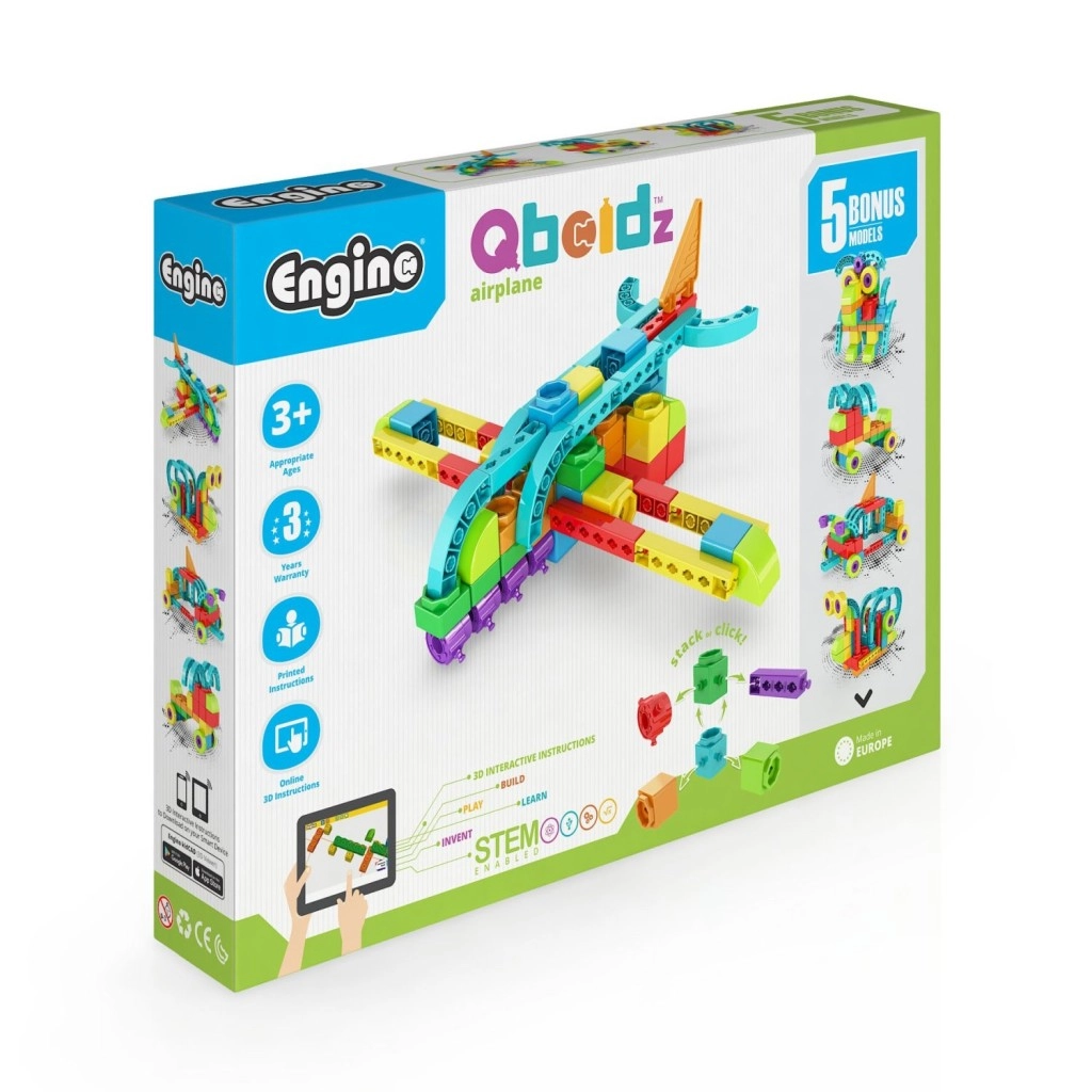 Entdecken Sie den kreativen ENGINO Qboidz Flugzeug-Baukasten für Kinder ab 3 Jahren, mit dem sich bis zu 5 verschiedene Modelle bauen lassen – von Tieren bis zum Flugzeug. Dank leichtem Snap-Click-Zusammenklicken, leuchtenden Farben und der interaktiven kidCAD-App trainieren Kinder Feinmotorik, Kreativität und logisches Denken. Der Baukasten ist kompatibel mit anderen ENGINO-Sets und in der EU hergestellt.