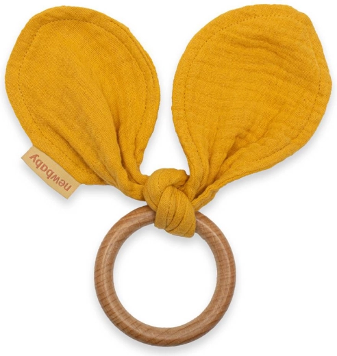 Der Beißring Ohren New Baby Ears bietet eine Kombination aus natürlichen Materialien, die Sanftheit und Widerstandsfähigkeit gewährleisten. Bio-Baumwolle ist hypoallergen und freundlich zur empfindlichen Babyhaut, während Buchenholz Haltbarkeit und Sicherheit bietet.