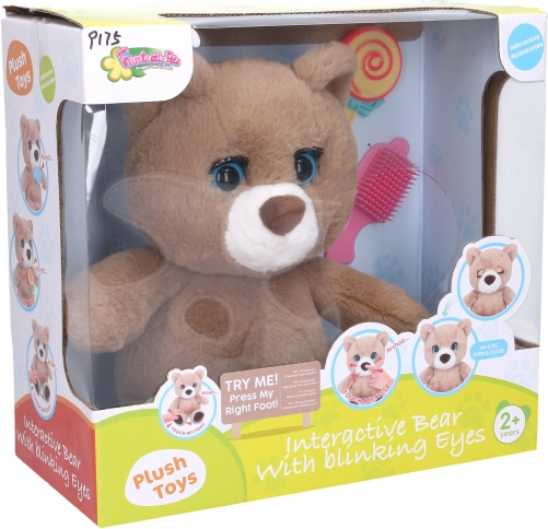 Wir präsentieren den niedlichen interaktiven Bären, der nicht nur Spaß, sondern auch Bildungselemente in die Welt der Kinder bringt. Der Bär ist 27 cm im Sitzen und ist mit Soundeffekten und beweglichen Körperteilen ausgestattet. Wecken Sie seine Interaktionen durch einfaches Drücken der linken Hand oder durch Anlegen von Gegenständen wie einem Lutscher oder einem Fisch an das Maul.