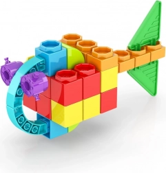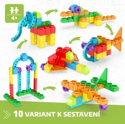Bauen Sie Tiere, Maschinen und Fahrzeuge aus großen, farbenfrohen und leicht verbindbaren Teilen. Die Vielfalt fördert Vorstellungskraft und Feinmotorik.
