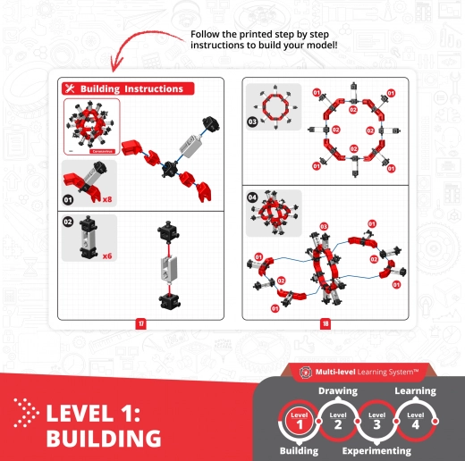 Der Engino-Baukasten Wie Viren funktionieren bietet Kindern eine fesselnde Möglichkeit, die Welt der Mikroorganismen zu verstehen. Er ermöglicht das Bauen von 2 Modellen und bietet ein cleveres Bildungskonzept in mehreren Ebenen – von praktischem Bauen über spielerisches Lernen bis zu Experimenten. Dank der Engino-kidCAD-App lassen sich detaillierte 3D-Anleitungen verfolgen, sodass auch komplexere Schritte leicht gelingen.