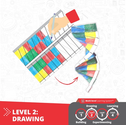 Das Vier-Stufen-Konzept fördert Feinmotorik, räumliches Vorstellungsvermögen sowie das Interesse an Naturwissenschaften. Kinder bauen zunächst ein Modell, gestalten es anschließend weiter durch das Ausmalen von Papierteilen, probieren einfache Experimente aus und festigen am Ende ihr Wissen durch spielerisches Lernen.