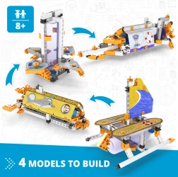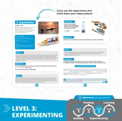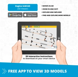 Dank durchdachter Lernstufen – vom einfachen Zusammenbauen über das kreative Ausmalen von Papierelementen bis hin zu eigenen Experimenten – eignen sich kleine Forscher Wissen spielerisch an. Die interaktive Engino kidCAD App zeigt 3D-Modelle und erleichtert den Aufbau Schritt für Schritt.