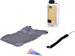 Das Gerät ist einfach zu bedienen: Lege die transparente Basis auf die Oberfläche des Untersuchungsobjekts, stelle mit dem Drehrad scharf und wähle je nach Bedarf 100x oder 250x Vergrößerung. Die robuste Metall- und Kunststoffkonstruktion, die Stromversorgung mit 1× AAA 1,5 V sowie das Zubehör im Lieferumfang machen es zu einem großartigen lehrreichen Geschenk.
